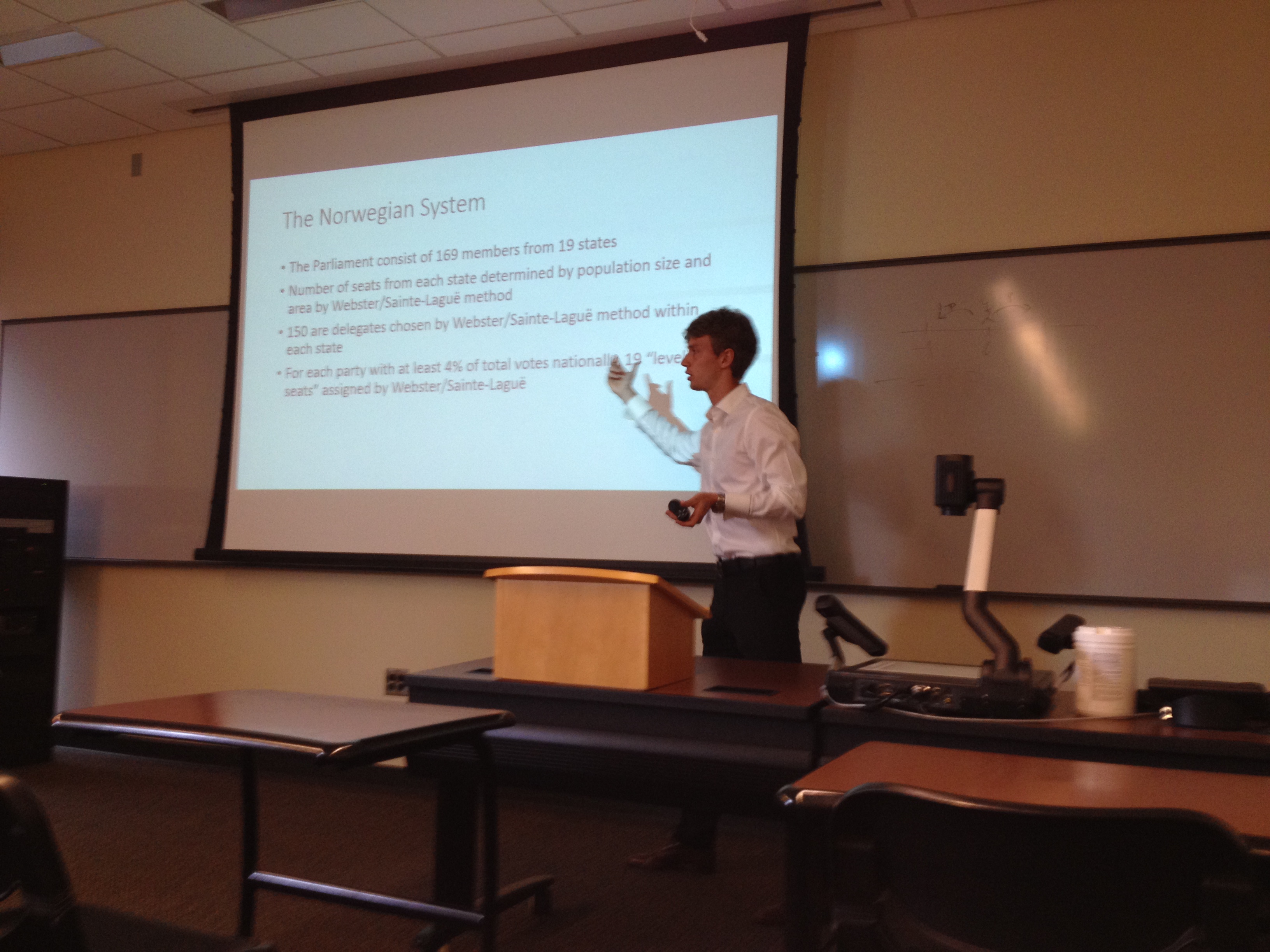 Jon explored the fairness of Norway’s system of proportional representation in its legislature. The idea of Democracy is interchangeable with equal or “fair” representation. What does equal representation look like in a political system with multiple parties, millions of votes and only a limited integer number of seats to be allocated? Jon investigated the current apportionment method used in Norway: a proportional representation system where the unit of representation is bound both to territory and to party. The voting power of a political party is not necessarily proportional to the number of seats it controls, and so Jon also used of power indices defined by Shapley-Shubik and Banzhaf. In the given context of Norway, Jon investigated how close the voting powers of the political parties corresponded with the number of votes they received, and when it is advantageous for parties to merge together to increase combined voting power rather than stay separated.