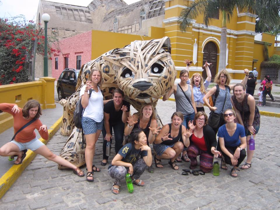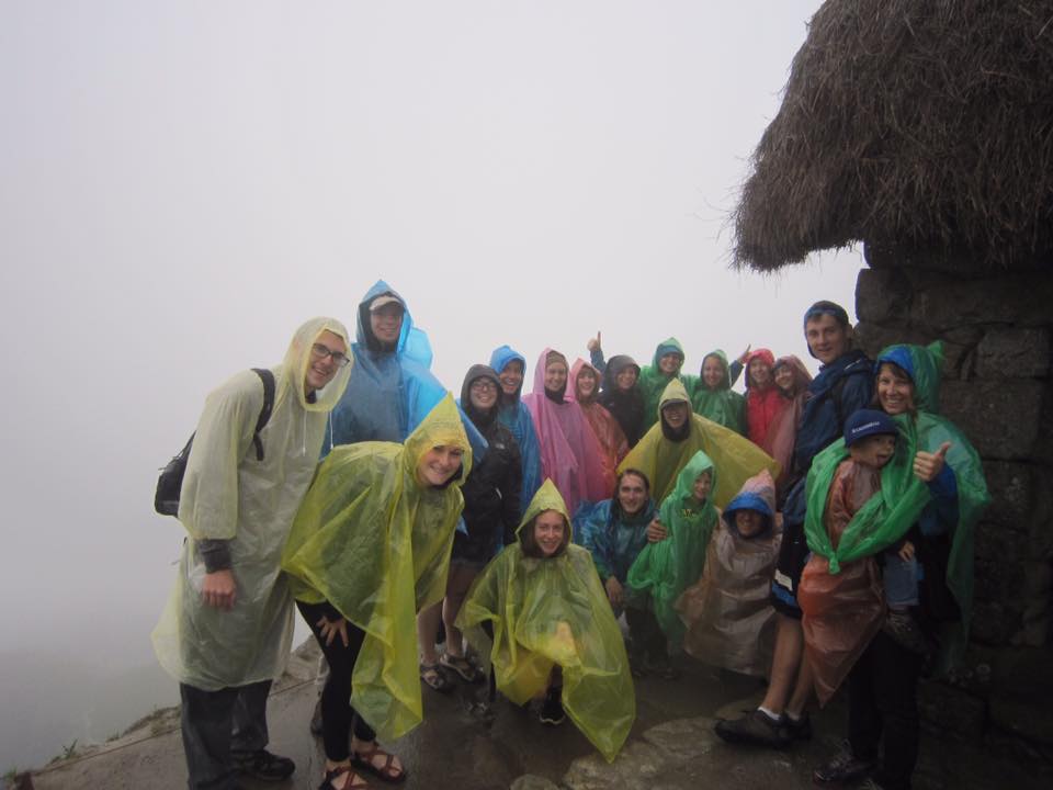 Our Machu Picchu day was a long one. We all had to get up at 5 a.m. in order to head on the bus up the mountain. We left in the rain, which was slightly ominous, but spirits were still high. As we arrived at Macchu Pichu, and started climbing the rocky steps in our ponchos, our energy dipped. However, once we arrived at the beautiful slopes of the terraced hills and saw those alapacas wandering around, witnessed the Temple of the Sun and hiked up Huaynapicchu, students were laughing again. (Or maybe it was those handsome Chilean hikers.)