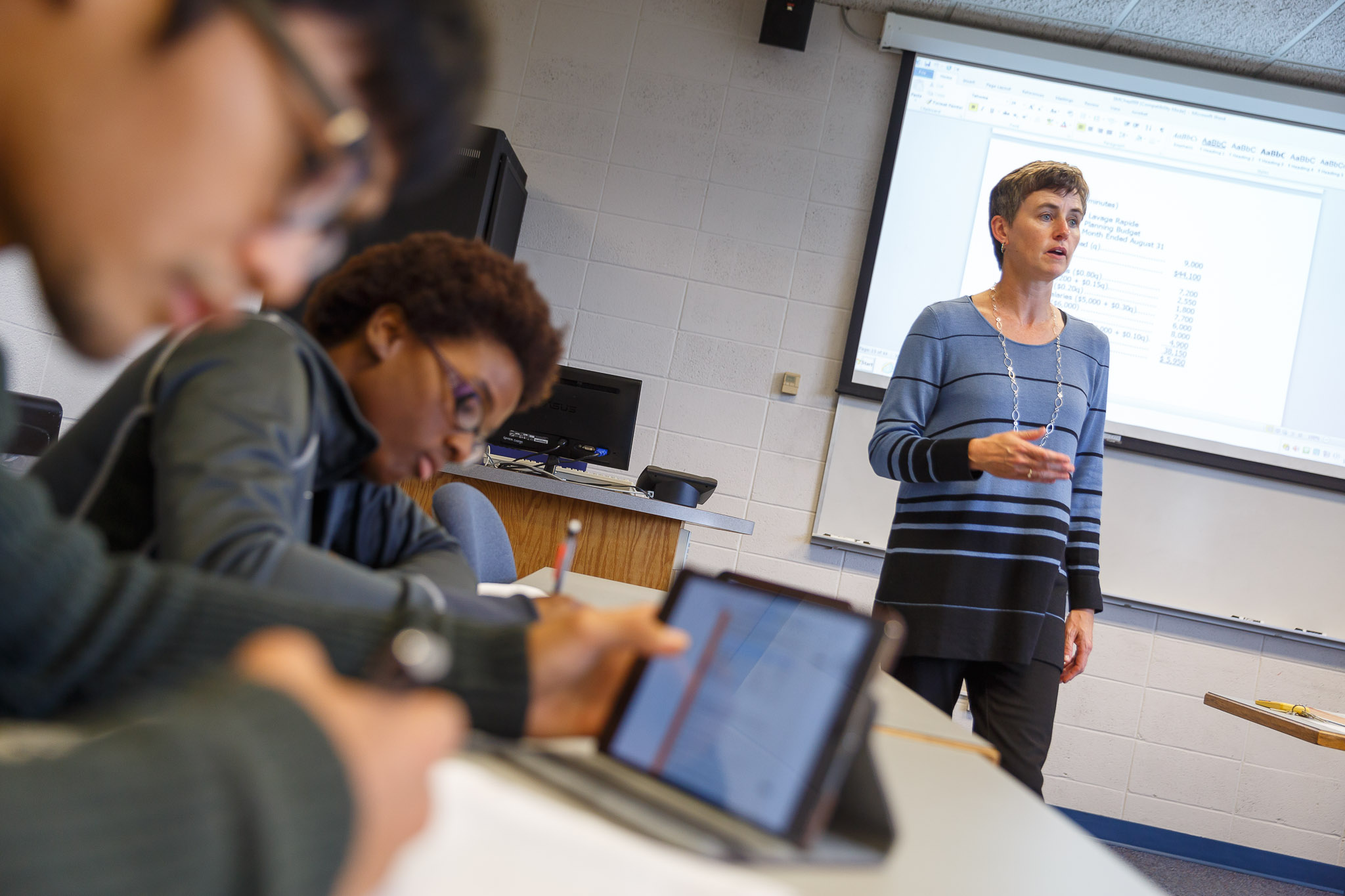 Horning teaches numerous accounting and business courses at the college including the Java Junction Management class, during which students take part in hands-on management of the college’s coffee shop. She is a member of the American Institute of Certified Public Accountants and American Accounting Association.