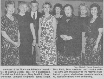 The idea of offering campus programs for the community came from Beth Rieth, a friend of the college, and Naomi Hunsberger, whose husband Arlin is the former director of international education at GC. They gathered a group of local women to serve as the first Afternoon Sabbatical committee, and the series was born.