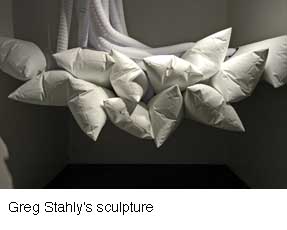 Stahly’s sculptures – large-scale, air-filled vinyl systems – evoke industrial images. “I am intrigued by the perpetual state of progress that has come to permeate every aspect of our lives. Newer and better systems are in constant development and implementation – all embracing the perceived goal of societal advancement,” he said. “These systems and structures directly influence our environment; guiding the current evolution of society and, therefore, ourselves. I view this relationship with skepticism and awe – simultaneously acknowledging both benefits and detriments. My work provides an opportunity to step back and evaluate how we utilize and participate in these systems and structures, in terms of both the impact they are having on contemporary life and the impact they might have on the future.”