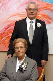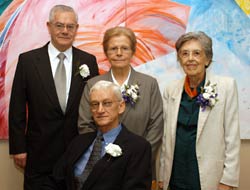 Awarded by the Goshen College Alumni Board, the 2004 honors will be presented to Pearl Hartz ’49 [far right], a restorative justice pioneer in San Diego, Calif.; Harold Kauffman ’61 [far left], a plant pathologist from Pesotum, Ill.; and Raúl and Anita (Swartzentruber) García ’56 [middle], ministers and educators in Argentina, during Homecoming Weekend Oct. 1-3.