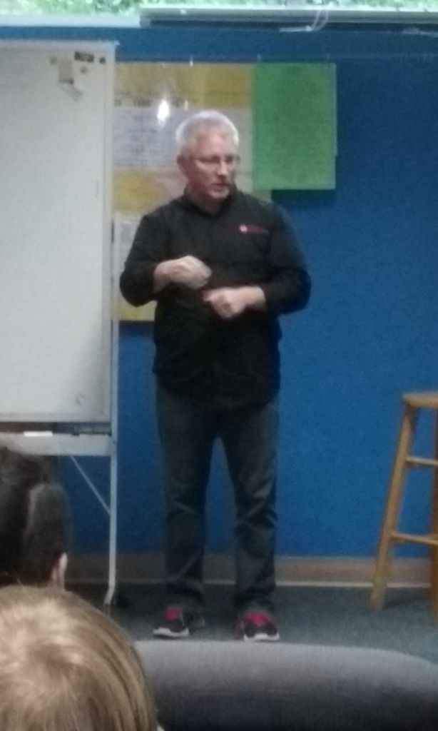 Chad Ettinger from Council Bluffs, Iowa was our presenter for the evening. It was a wonderful evening of story-telling. The best part about it was we were able to include prospective students from around the country, local high school students our ASL students and people from the Deaf Community. We had a packed house! Plus there were awesome snacks from the ASL Club. We hope to do this again in the spring semester.