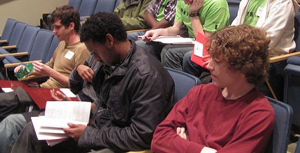 Chaim Hodges, Bruck Mulat, and Andrew Clemens competed April 8 as one of twenty-eight teams in the 2011 Indiana Colleges Mathematics Contest.