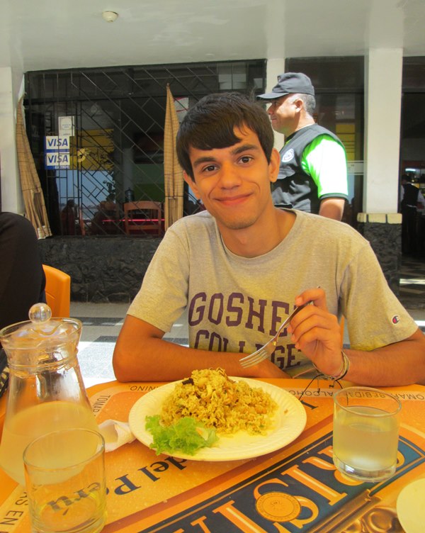 Later that evening, we joined Armando’s family in the city of Chiclayo, for a meal of chicken and rice in a peanut sauce. His parents, Guzman and Mary Ramos Mendoza, are both deaf and teach at the Harvest school. Their baby, Rosa, not quite 1, is hearing. Armando spends much of his free time at the house, including many weekend hours helping to install a tile floor in a downstairs apartment.