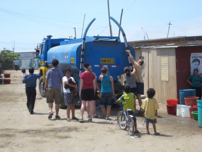 Distributing water in a Lima shantytown