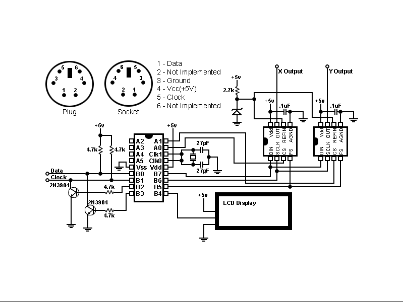 The mouse interface is a connection of a standard PS/2 Mouse used on most computers to a microcontroller. Microcontroller communicates with the mouse sending the information needed for the mouse to start sending coordinate information. The microcontroller then reads the coordinate information that is sent by the mouse and processes it. That coordinate information is then inputted into a 2D Plotter which plots the X and Y movements of the mouse, resulting in a plot that follows the mouse.