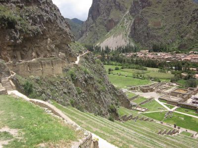 The next day we awoke to sunshine and spent the whole day exploring Ollantaytambo. We began on the seldom-visited “colca” side of the valley. This is where the Incas stored surplus products such as dried potatoes, grains, cloth and items for trade. Then we visited the home of a friend of our guide, Oswaldo, a house that has been inhabited for more than 500 years. A variety of odd and interesting items were on display there. Afterwards we climbed up to the top of the fortress to appreciate the fine stonework and take in the impressive view of the valley below. And at day’s end we boarded a train … for Machu Picchu.