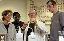 Left: Schirch, associate professor of chemistry, returned to the campus Science Building this academic year to teach a new generation of students.