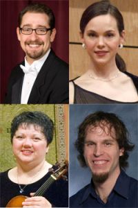 Clockwise starting from top left: Assistant Professor of Music Scott Hochstetler, baritone; Danielle Svonavec, soprano; Jeff Martin, tenor; Community School of the Arts String Director Rosalyn Troiano, violin.
