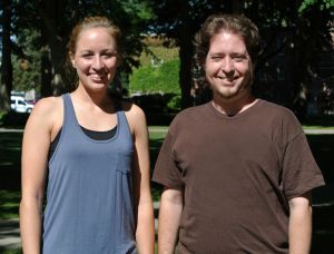 Jenna Nofziger, a junior molecular biology/biochemistry major from Archbold, Ohio, and Nathaniel Tann, a 2012 graduate with majors in biology and psychology from East Petersburg, Pa., worked with Professor of Biology Stan Grove on a project generating algal biomass inexpensively enough to allow the derived biofuel to compete with petroleum-based fuels.