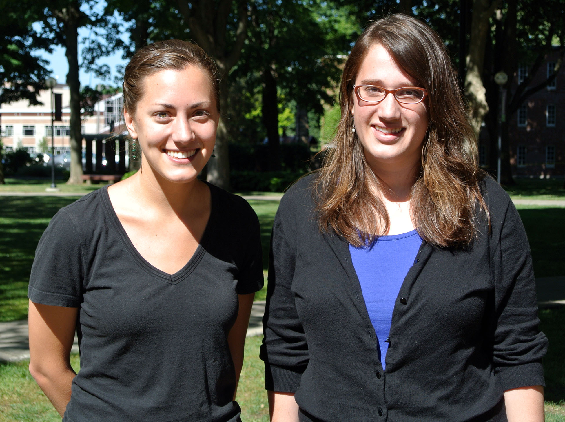 Lauren Stoltzfus, a senior English writing major from Lancaster, Pa., and Rebecca Weaver, a 2012 graduate with a major in psychology from Harleysville, Pa., worked with Professor of English Ann Hostetler on a project collecting research data on the pedagogy of multicultural literature studied at the college level.