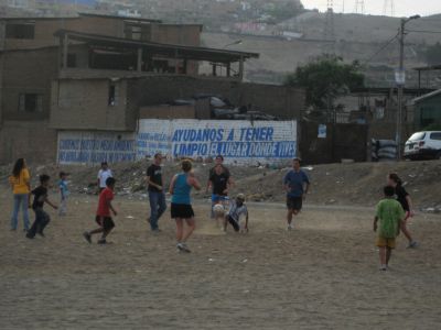 After a long day of painting, SSTers took to the field for a friendly game of soccer with young futbalistas from Villa María del Triunfo, the district in the Southern Cone where Alicia lives and where she and her family hosted us for the night.