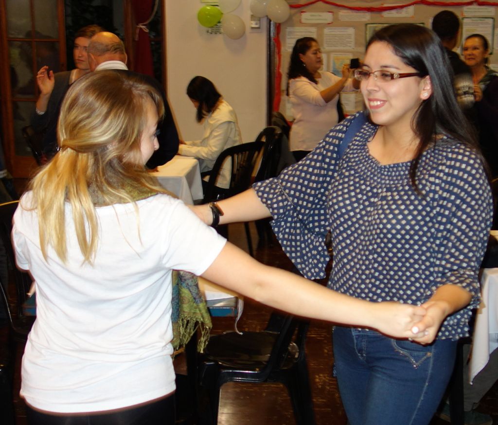 When the families arrived, the students waited on the tables for their host families, dined together, performed entertainment that they had learned in their language classes, and closed the evening with a dance.
