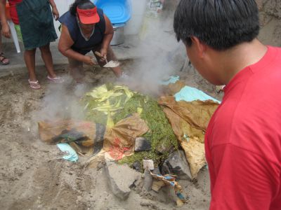 Finally, we enjoyed a traditional Andean feast: pachamanca, which means “earth oven” in Quechua. Our friend Alicia directed the cooking crew and served up a tasty meal of chicken, potatoes, tamales, beans, and sweet potatoes, all cooked underground in a pit full of heated rocks. It’s a special meal that we were glad to share right before the SSTers last week in Lima.