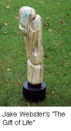 Webster was trained as a painter and art educator. In the spring of 1974, he became a sculptor “standing in the marble quarry of Pietrasanta, Italy. For it was at that moment I realized the making of art is more about feeling than seeing. The making of art is just as much about being as doing,” he said. “Selecting wood and stone for my medium frees me from my academic training but not of the discipline. It is pleasingly shocking when the world in which I live is mirrored back before us to see, to touch, to smell, to feel in three-dimensional form. I use simple tools to cut simple shapes to make a simple statement about a simple world we have made more complex.”