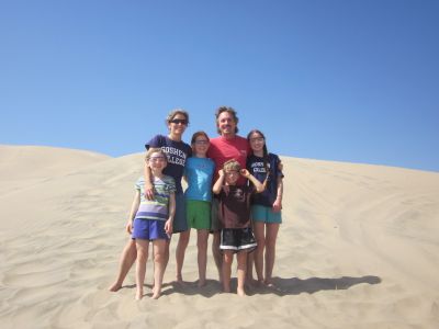 We spent an afternoon with friends from church at the Parque de la Reserva, a.k.a. Water Park, the largest collection of fountains in the world. The next day we went to another friends’ home for dinner. It turned out to be a surprise party for Jane and Jerrell, whose birthdays were on April 17 and 21. Then we boarded a bus for Ica and found our way to a desert oasis called Huacachina for a few days of sun, sand and a chance to delight in God’s creation.