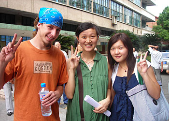 “My family is so very gracious and have made me feel as much at home as I can imagine anyone can feel the first days in a completely new place,” wrote Beth Glick, a junior interdisciplinary major from Goshen. “My host mother has been very good with repeating the words for certain things (chair, table, chopsticks, hot and cold water) to help me try and learn and I really appreciate this even though I haven’t been able to retain anything besides goodnight (wan an). … The food here is good. I don’t know the names of anything, but there is usually a variety at every meal. For breakfast we just had duck, rice porridge, cooked peanuts and milk.”