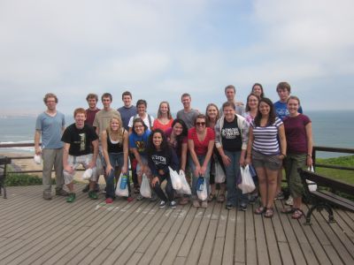 The students spent their first day in Peru strolling through Lima’ San Isidro district, seeing their first glimpse of the Pacific Ocean and getting acquainted with each other. We made a stop at the San Miguel Arcangel monument in the center of the Ovalo Gutierrez. The students took photos and changed money. We talked about being present in Peru, about staying safe and looking out for each other. We picnicked on the Malecon park overlooking the ocean. Then we played games on the lawn. We finished the afternoon outlining academic expectations and eating a delicious dinner of pollo al horno, puree de papa, arroz y ensalada cocida (oven-roasted chicken, mashed potatoes, rice and cooked vegetable salad).