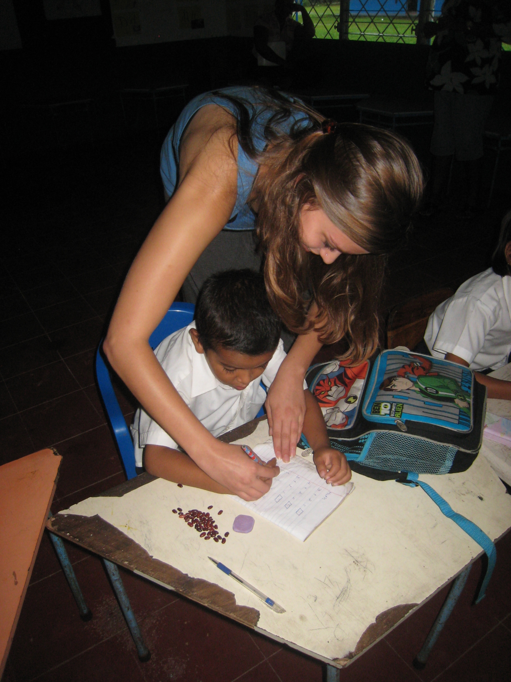 The steady rain that we experienced during nearly our entire stay affected school attendance at the school where Lynelle is working. Out of her 27 1st graders, she had 3 students in her classroom the morning we visited. We were able to see Lynelle working one-on-one with the students, as the majority of her class doesn’t come when the weather is rainy. The 2nd grade teacher had no students that day so she was in the 1st grade classroom. Lynelle is working at the bilingual school, Beulahlightbur Primary school. Her students speak Creole, English, and/or Spanish. Some students speak only Spanish and others speak Creole and English. Class is taught mostly in English/Creole but with the goal of teaching part of it in Spanish every day. Several students have had a hard time understanding Lynelle’s North American English accent so she has been learning some Creole and pronouncing her words like the locals. The day we visited, there was a little boy who has been in the class for approximately two weeks. He spoke only Spanish and was struggling with writing numbers, so Lynelle was working with him on numbers in Spanish and English. While walking through town with her that afternoon, she was greeted by several of her students. As with many of the education students, Lynelle has noted the difference between the value of education in the United States and in Nicaragua.