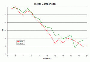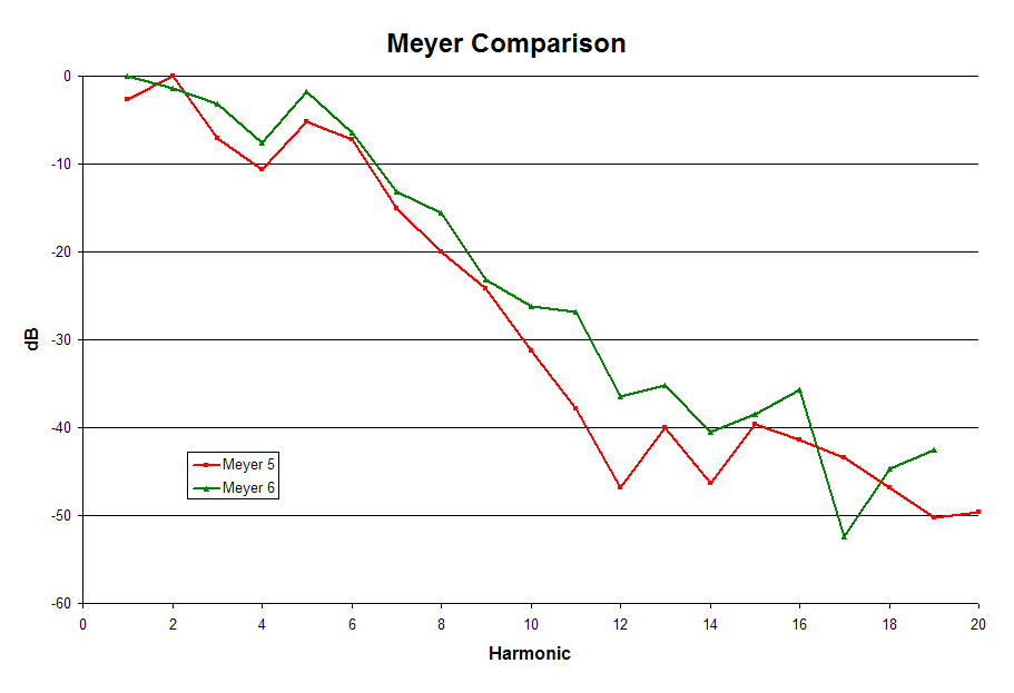 One final comparison to note is this: When we look at the harmonics spectra of the Meyer 5M and the Meyer 6M, we note that they are very similar.