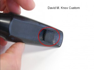 The saxophone mouthpiece is where the initial vibrations that produce sound in the instrument are created. The reed is placed on the flat surface of the table where it is held in place by the ligature. (To see a picture of the full mouthpiece setup, see this link [link to setup pic.jpg].) At a certain point near the tip, however, the table is no longer flat, and what is called the facing curves away, allowing the end of the reed to vibrate back and forth. Air moving past the vibrating reed the moves into the tone chamber and then on into the bore where the mouthpiece is connected to the body of the instrument via a cork neck.