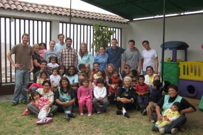 Our most recent service trip took us to the rural village of Quebrada Verde, about a 70-minute drive south from Lima. There we spent a day and a half at Santa Rosa de Lima Montessori School, where we got a chance to meet the young students and help with many projects, including moving the library to a new location, preparing worksheets, cleaning up around the school, assembling a model skeleton, and performing a puppet show.
