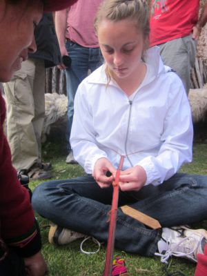 Peru is famous for its fine textiles. We visited the Andean Weaving Center, a workshop where women use looms to produce mantas (blankets used to transport anything from babies to corn on one’s back), table runners and clothing. We learned from our host, Rene Huaman Callanaupa, that these traditional weaving techniques were almost lost during the colonial period as Andeans were forced to work in the mines and haciendas (estate farms) for their Spanish masters. In the last several decades arts like these have been revived by the influx of tourism. The techniques are labor intensive — it takes several weeks to make a table-runner — and foreign tourists have sufficient income and interest in these pieces to support the artisans through their purchases.