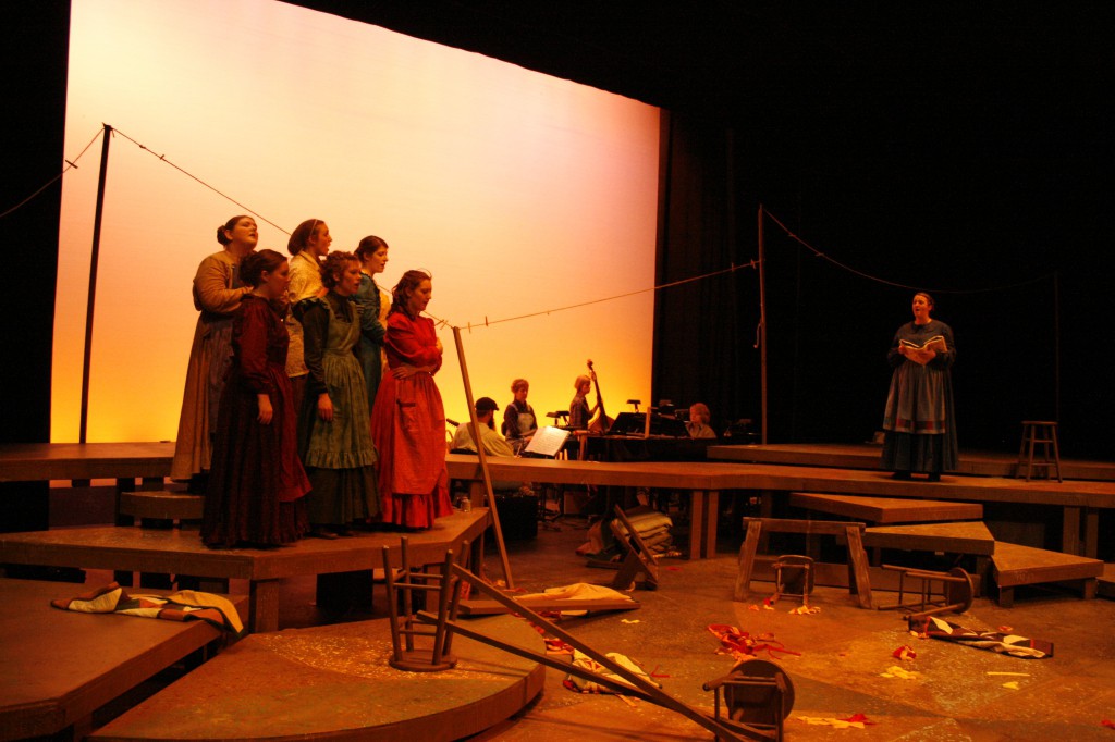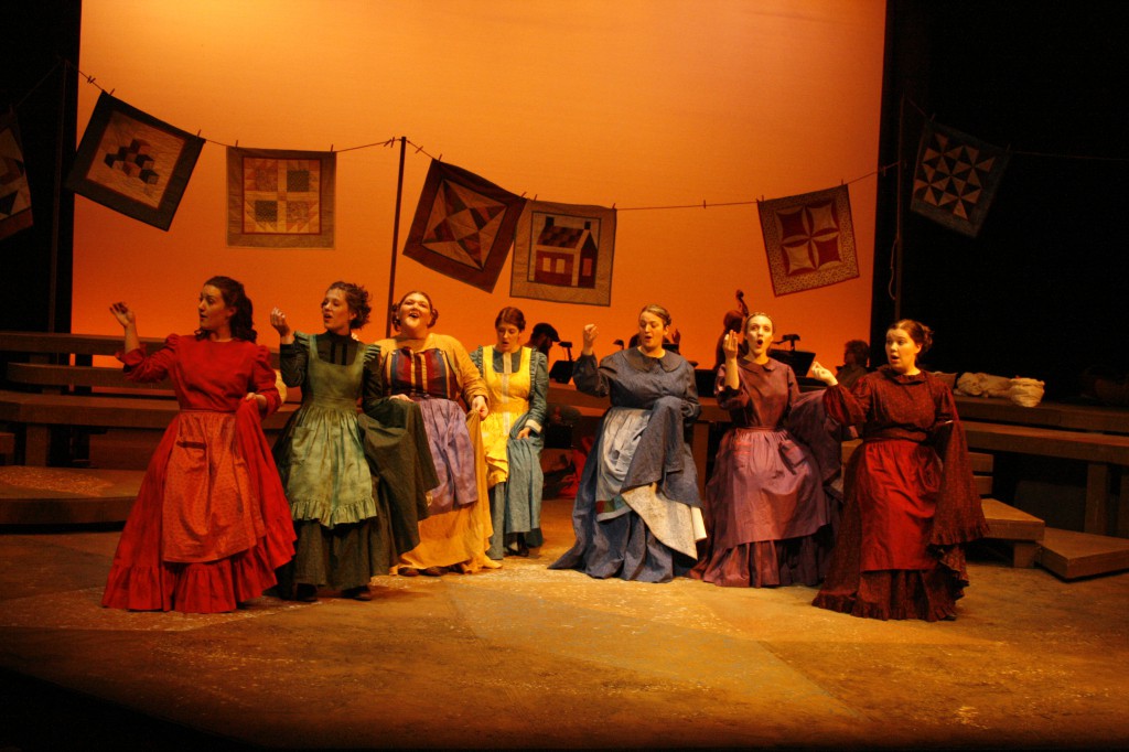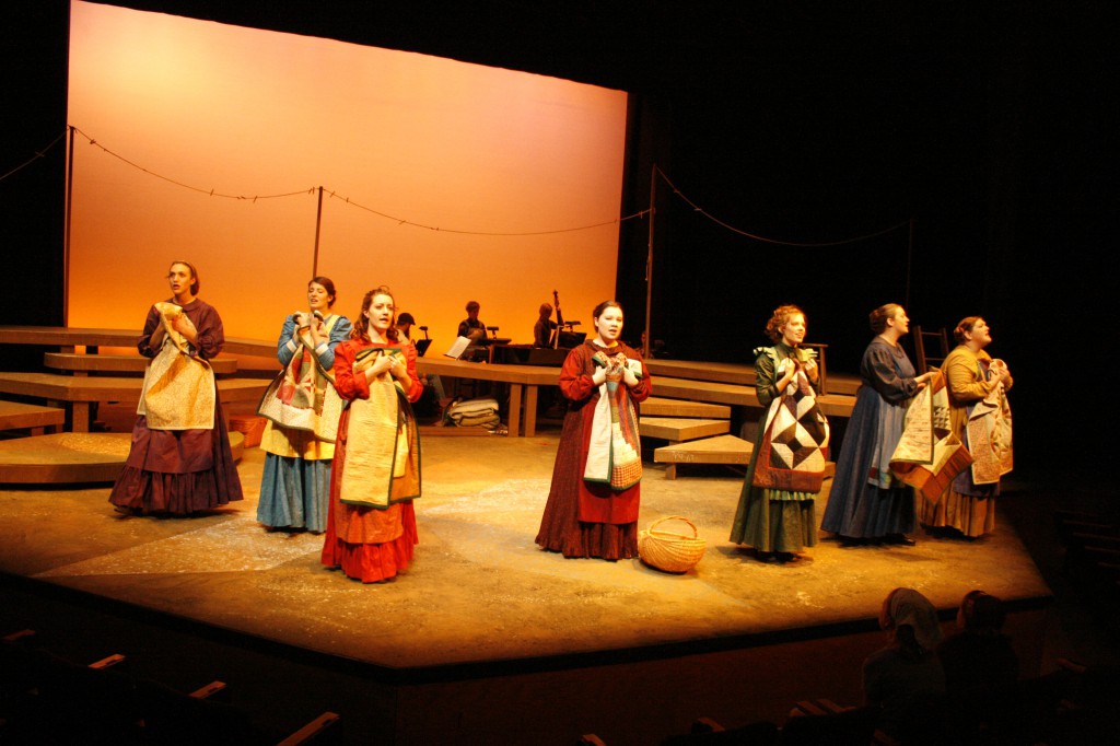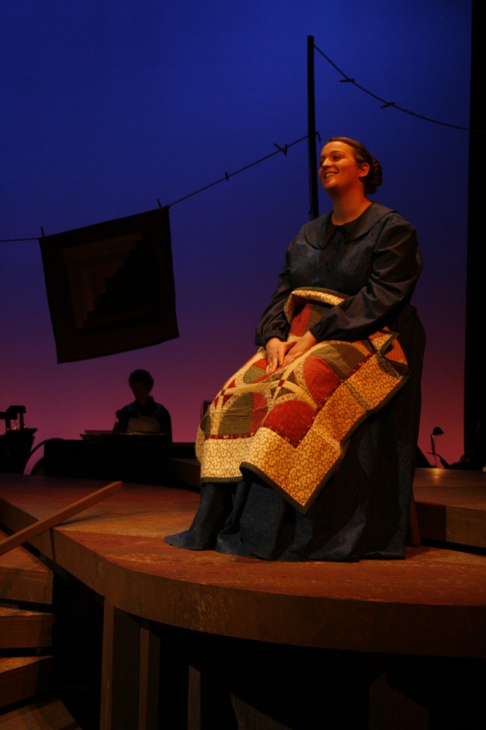 But this past May didn’t offer such leisurely opportunities to senior Adrienne Nesbitt and other students and faculty who turned a class into the full musical drama “Quilters” performed on the Umble Center stage to large audiences May 18-20.