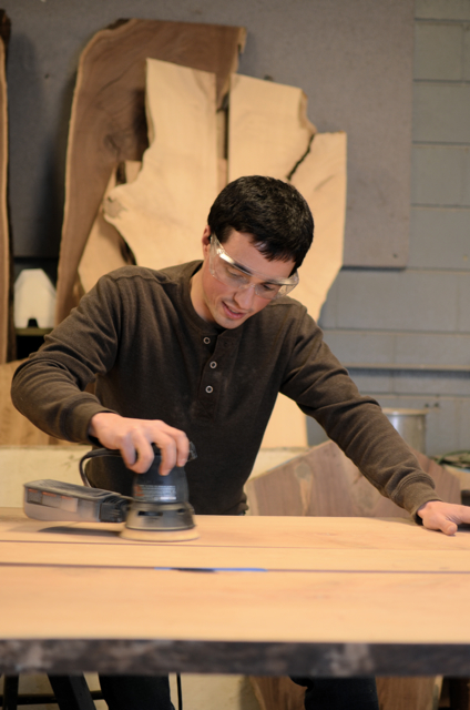 Matt Thomas is a senior art major from Goshen, IN with a focus on sculptural furniture. His work explores the relationships between material, form and function, incorporating natural live edge slab wood with formed steel and aluminum bases.