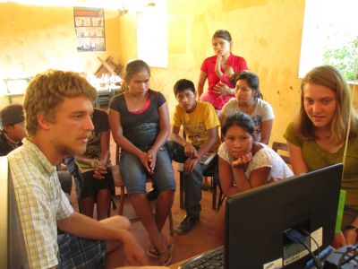Lucas and Sophia are working with the nonprofit organization Ecomundo to teach children as well as adults the basics of computer operation in this native village. In the mornings they teach a group of 8-10 school children how to use programs such as Word and Excel. In the afternoons they teach similar skills to adults and young people. Keyboarding, using all ten fingers, is new to their students and it is rewarding to see how development of this skill can speed up their typing.