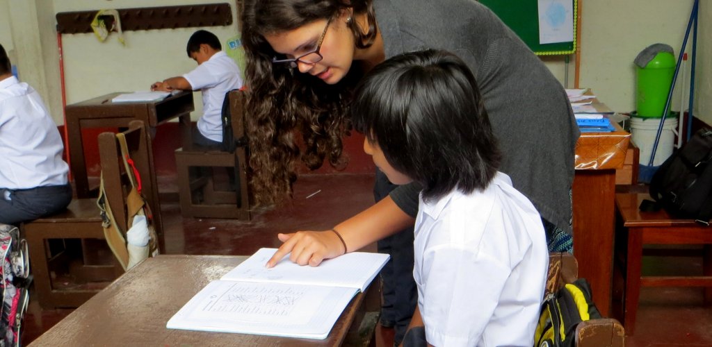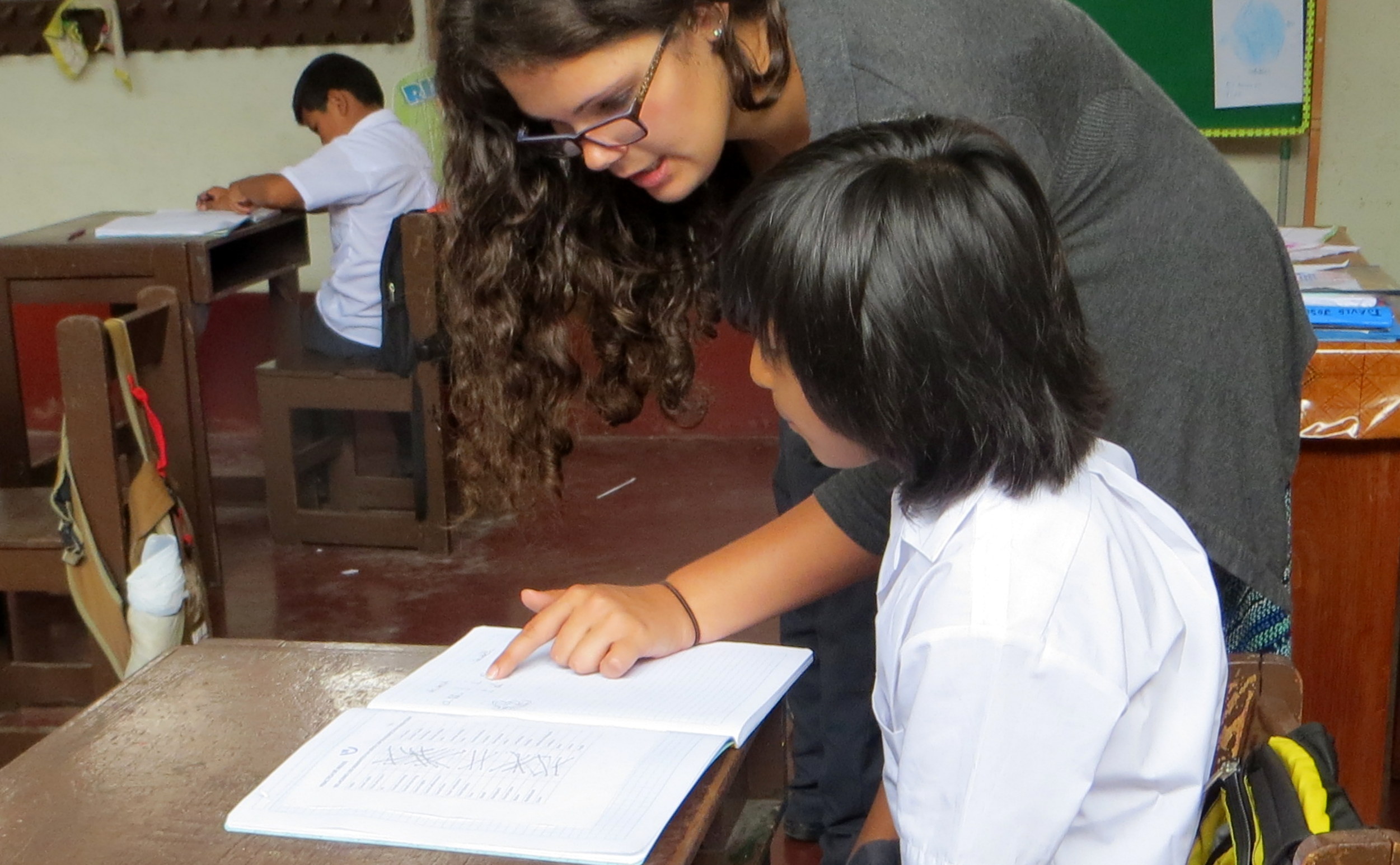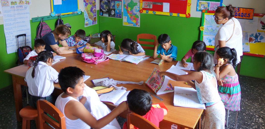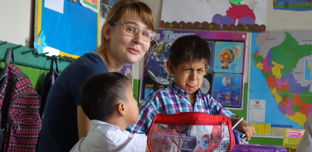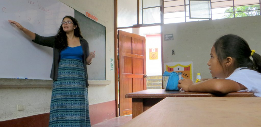 Dusti lives and works in San Ramon. In the mornings she volunteers at a private health clinic, and in the afternoons she helps teachers in English classes at a public school for at-risk children from low-income families. Like Lauren, she finds classroom discipline to be an even larger hurdle than speaking Spanish or riding crowded buses in Lima. However, students in both schools grew very attached to the visiting English instructors.