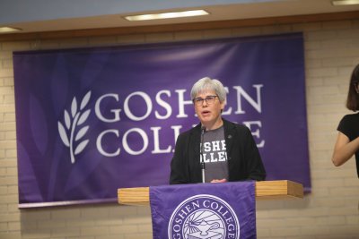 During the convocation, Goshen College President Rebecca Stoltzfus spoke to the campus community about this year’s core value focus of global citizenship as the college celebrates 50 years of its nationally-recognized study abroad program, Study-Service Term (SST). During the 1968-69 academic year, Goshen College’s first official SST units traveled to Costa Rica, Guadalupe, Jamaica, Honduras, Nicaragua and Haiti.