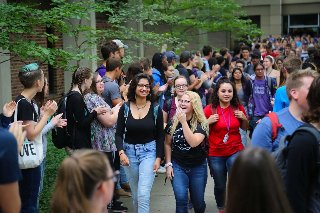 Following the convocation, staff and students exited the Church-Chapel and lined up for the annual applause tunnel, an 18-year GC tradition. Starting with faculty and staff, followed by seniors, juniors, sophomores and then first-year students, the tunnel of sustained cheering and applause serves to welcome new and returning students back to campus.