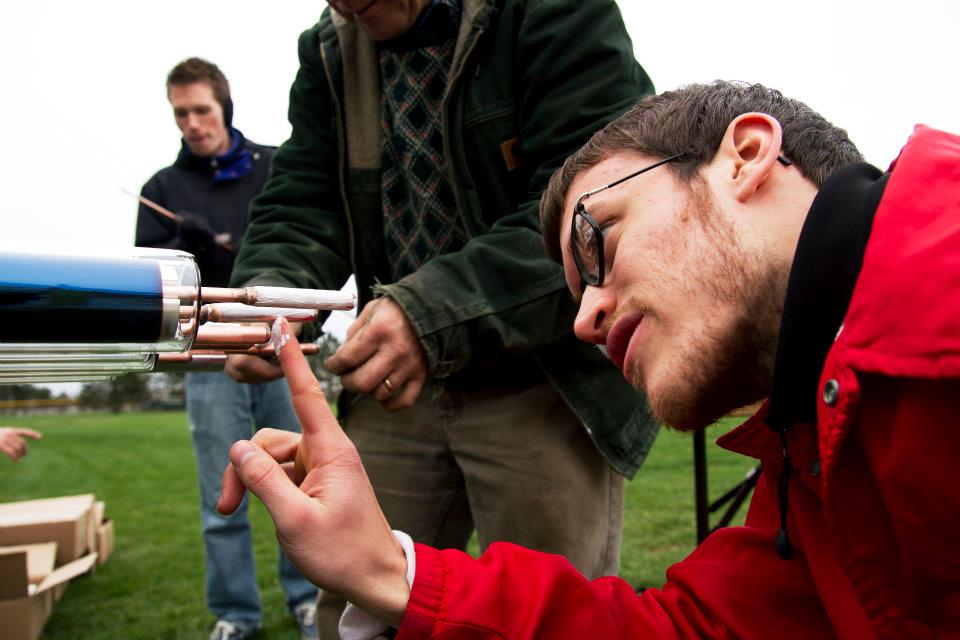 Physics students designed, found funding, and built a solar powered system to heat shower water for the Recreational Fitness Center at Goshen College.