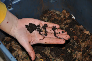 The worms were given to us and we revamped the bin a bit, improving drainage. We created layers with strips of newspaper, soil, peat, kitchen scraps and worms. The dry materials help to soak up the extra moisture created by the kitchen scraps. The worms (pictured here) most often recommended for vermicomposting are Red Wigglers. This is because of their habit of foraging for food closer to the surface of the soil (as opposed to earthworms that prefer to burrow much deeper). Since the renovation of their home, the worms have been happily working away at turning our kitchen scraps into the most wonderful, nutrient-rich compost that will greatly benefit us in the coming growing season.