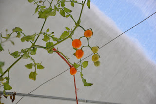 Though the winter has been too cold for growing plants outside, we have been keeping busy with other projects here at Rieth Village. One of those projects has been season extension. In our greenhouse, the lives of many of our plants were extended well into the winter. In fact, our final tomato harvest of 2011 took place on December 1st! The picture shows a Sungold Tomato plant thriving and producing fruit with snow on the roof of the greenhouse. Also, thanks to our newly constructed hoophouse, we were able to pull some red kale all the way through the winter season. The plants are still providing us with lush, beautiful leaves!