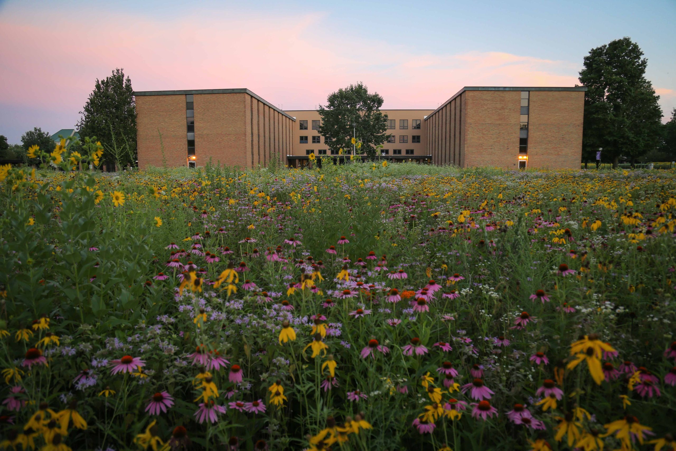 Approximately 12 acres — or nearly 20%! — of the campus lawn has been converted to native prairie land.