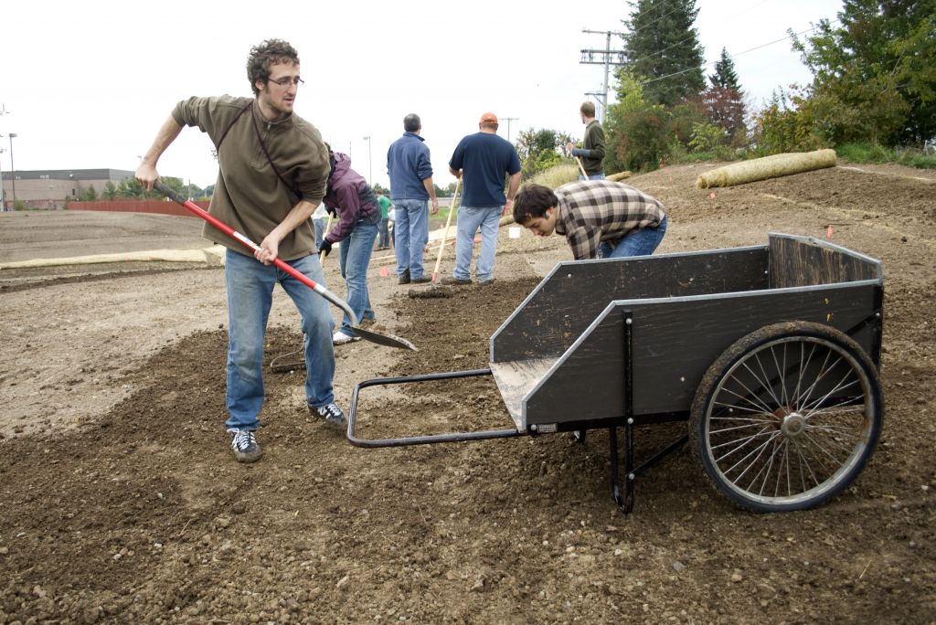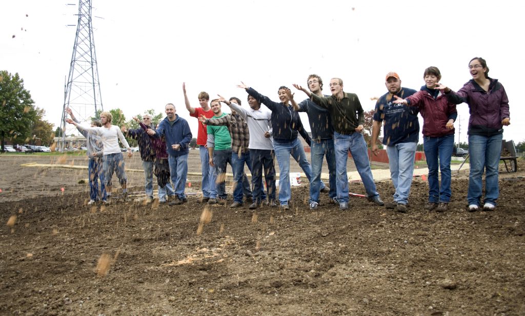 Starting in 2010, large areas of the college campus lawn have been transformed from traditional lawn to native prairie laboratory spaces. In the spring of 2010, Goshen College starting planning and organizing this project. The change required that the existing turf be killed and new seeds be planted. Now the slow waiting process begins as many different types of native seeds germinate and become established.